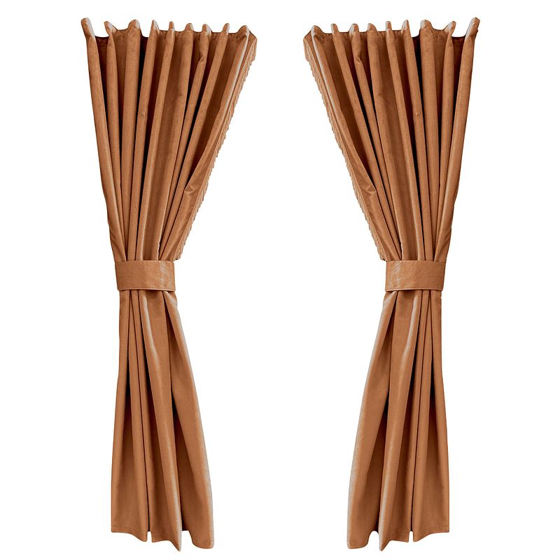 Tussengordijnen set met Franje - Deense Pluche - Bruin